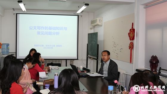 根据文科研究生职业能力建设的特点,为提升大家的行政写作能力,4月17日,学院邀请党委办公室、校长办公室副主任都基辉为研究生们进行一场公文写作技能培训的讲座。都基辉首先对公文写作的基础知识和重要性进行了讲解。他